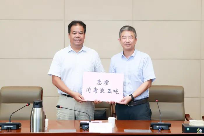 捐贈儀式上,后勤服務(wù)集團(tuán)負(fù)責(zé)人代表學(xué)校接受江蘇乾寶生物科技有限公司的捐贈,宋長春向江蘇乾寶生物科技有限公司發(fā)放捐贈證書。