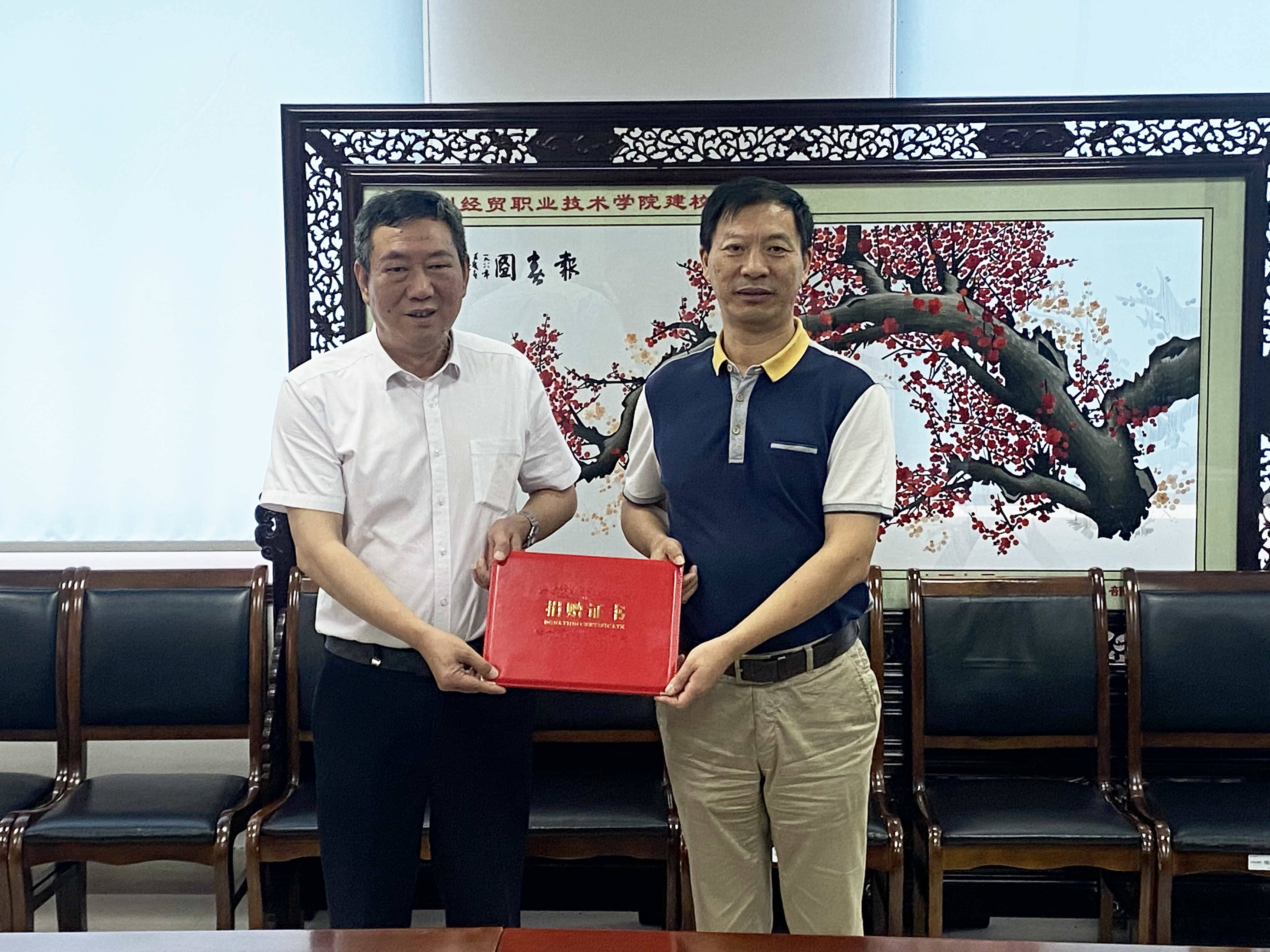 最后,雙方進(jìn)行了捐贈(zèng)物資的交接,蘇州經(jīng)貿(mào)職業(yè)技術(shù)學(xué)院副院長(zhǎng)沈文其向企業(yè)頒發(fā)了捐贈(zèng)證書(shū),并合影留念。