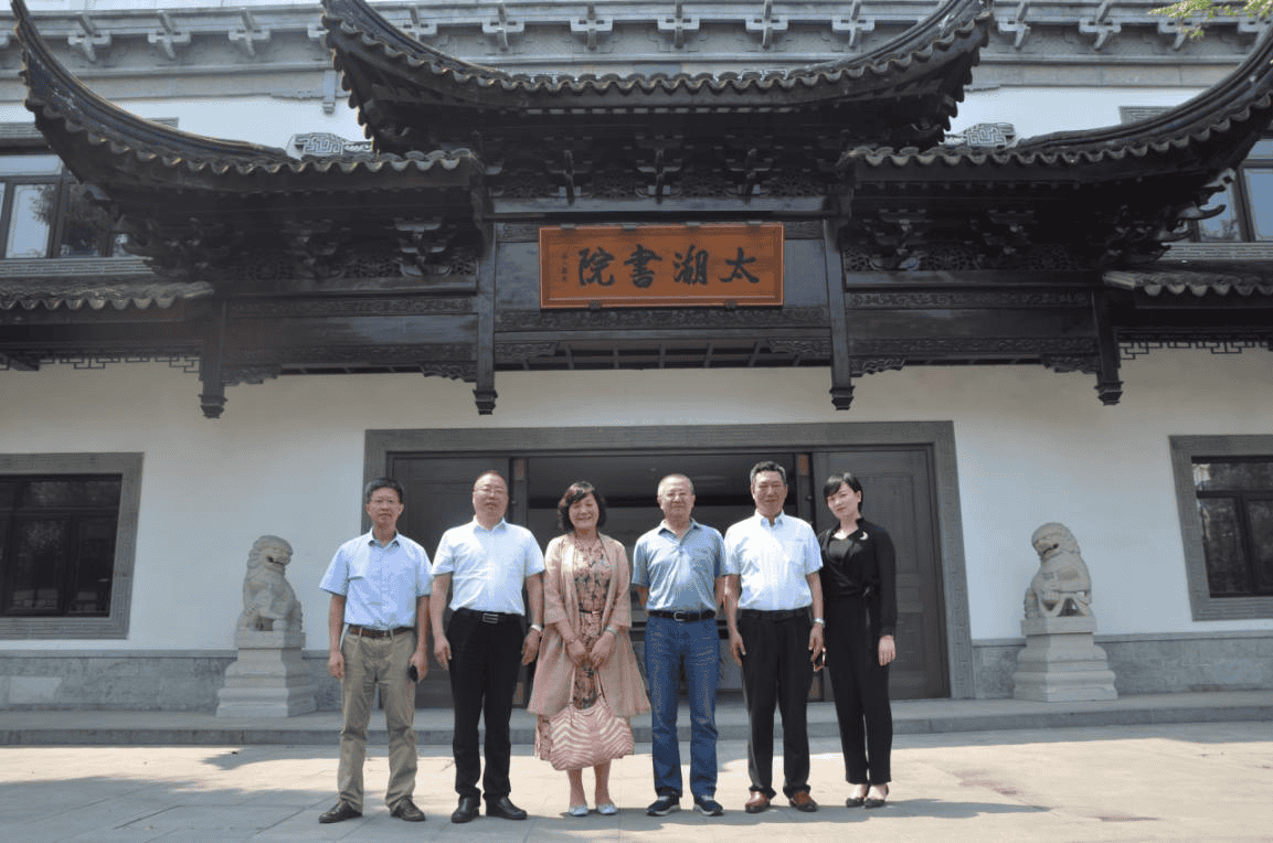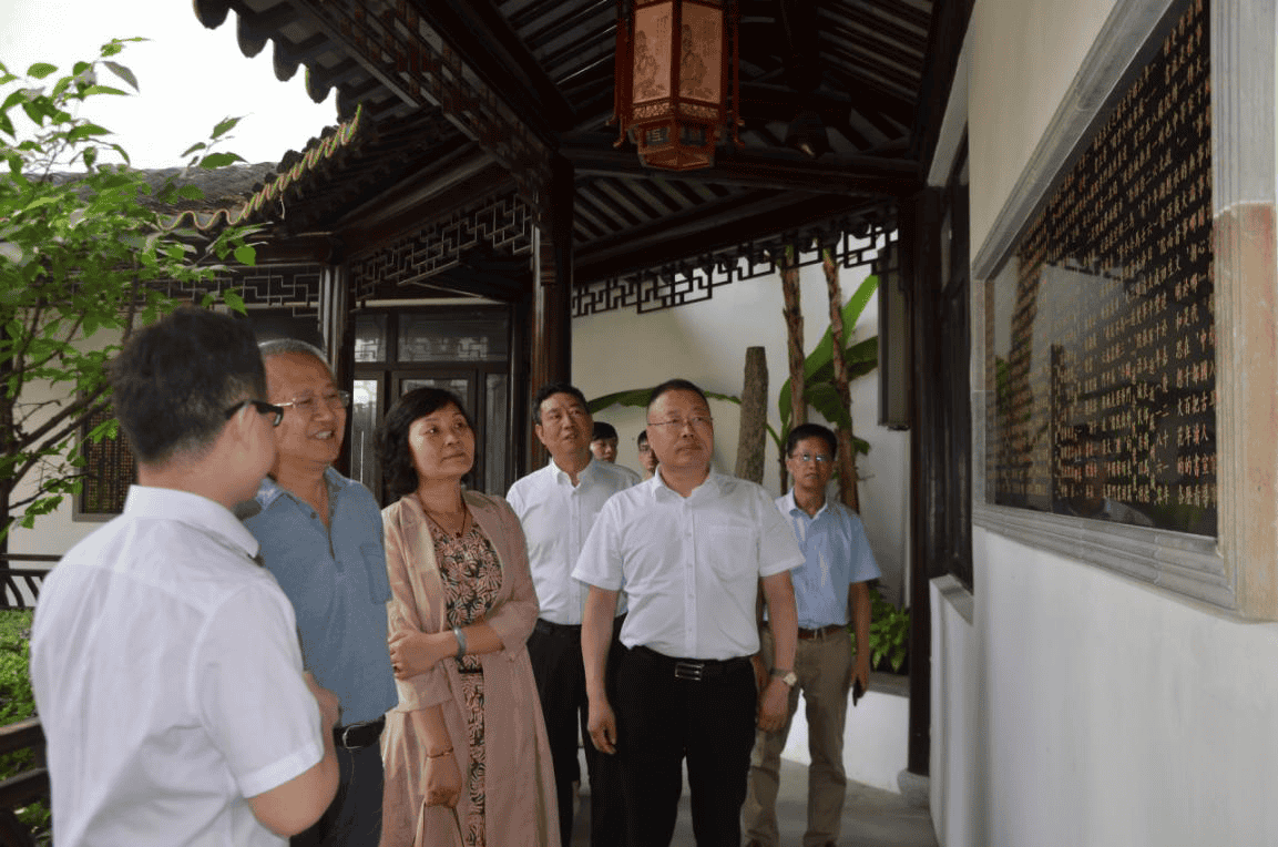 在乾寶集團和太湖書院領導及工作人員的陪同下,高觀一行參觀了乾寶集團旗下的太湖書院文博館、非遺古建館、允中藝術館、名家藏書館和入選了“天堂蘇州·百園之城”項目的太湖書院易園,考察了湖羊文化,并參加了調(diào)研座談會。