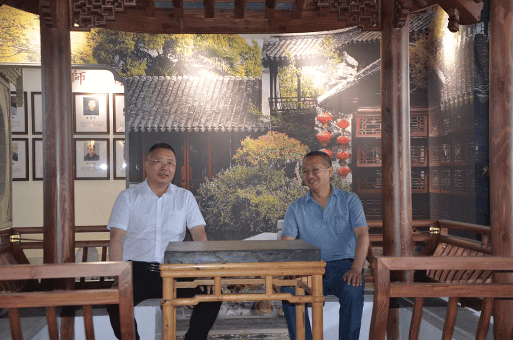 太湖書院理事長王躍程(左)和中國肉類協(xié)會副會長高觀(右)在非遺古建館