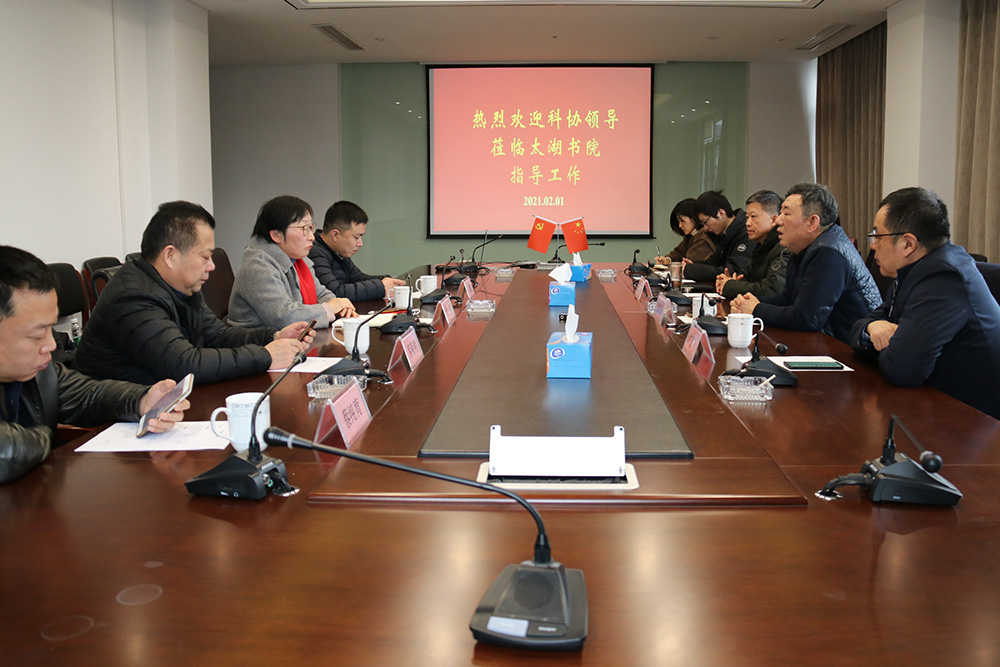 2月1日,吳中區(qū)科協(xié)俞菊副主席蒞臨太湖書院考察指導(dǎo),區(qū)科協(xié)普及部部長馮朋超、胥口鎮(zhèn)科技辦主任蔡菊明等陪同考察。江蘇乾寶集團執(zhí)行總裁、太湖書院秘書長王翼寧,集團常務(wù)副總裁、書院副院長許建華,書院執(zhí)行院長王建明等人熱情接待。