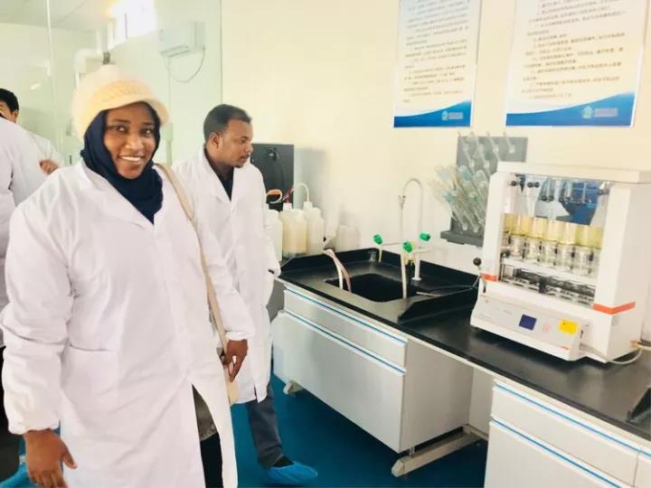 蘇丹公派的學(xué)者與揚(yáng)州大學(xué)李傭軍等教授一行企業(yè)領(lǐng)導(dǎo)和養(yǎng)殖技術(shù)人員的陪同下進(jìn)行實(shí)地調(diào)研。