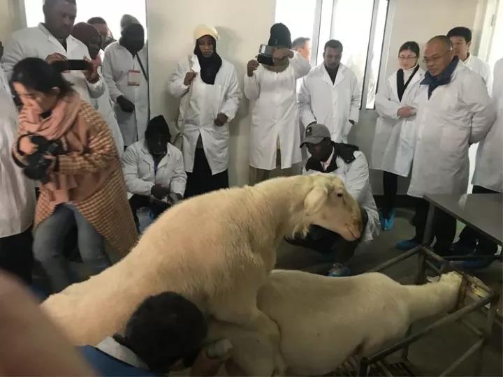 蘇丹共和國(guó)的大學(xué)教授們對(duì)乾寶牧業(yè)養(yǎng)殖的湖羊非常親切,非常激動(dòng),并提出抱著照相留念。