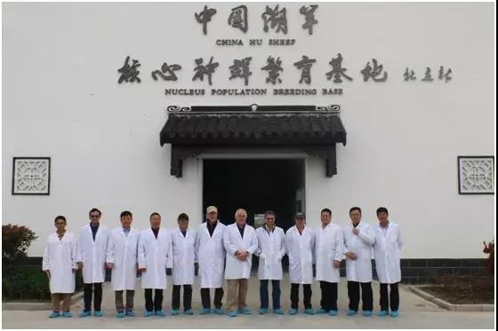 Hugh Blair休/布萊爾等一行專家教授與乾寶湖羊產(chǎn)業(yè)公司領(lǐng)導(dǎo)在中國湖羊產(chǎn)業(yè)研究院精神堡壘前合影