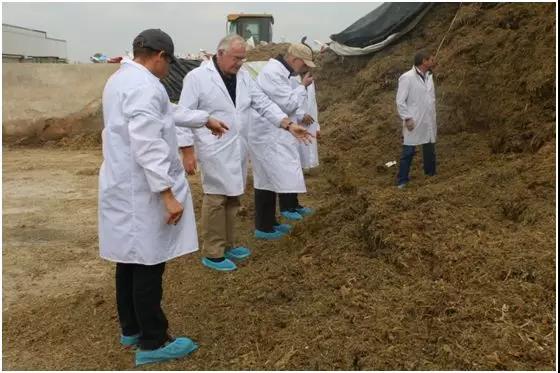 Hugh Blair休/布萊爾等一行專家教授在青貯窖池前了解青貯飼料儲存情況等