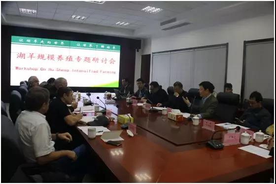 Hugh Blair休/布萊爾等一行專家教授與乾寶湖羊產(chǎn)業(yè)公司領(lǐng)導(dǎo)員工在會議室召開湖羊規(guī)模養(yǎng)殖專題研討會