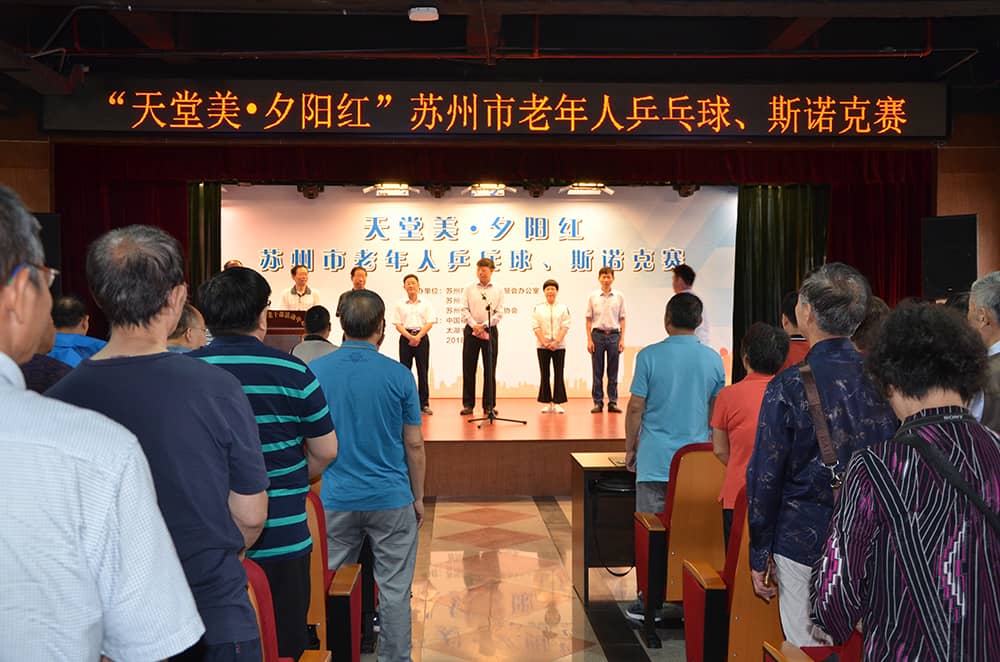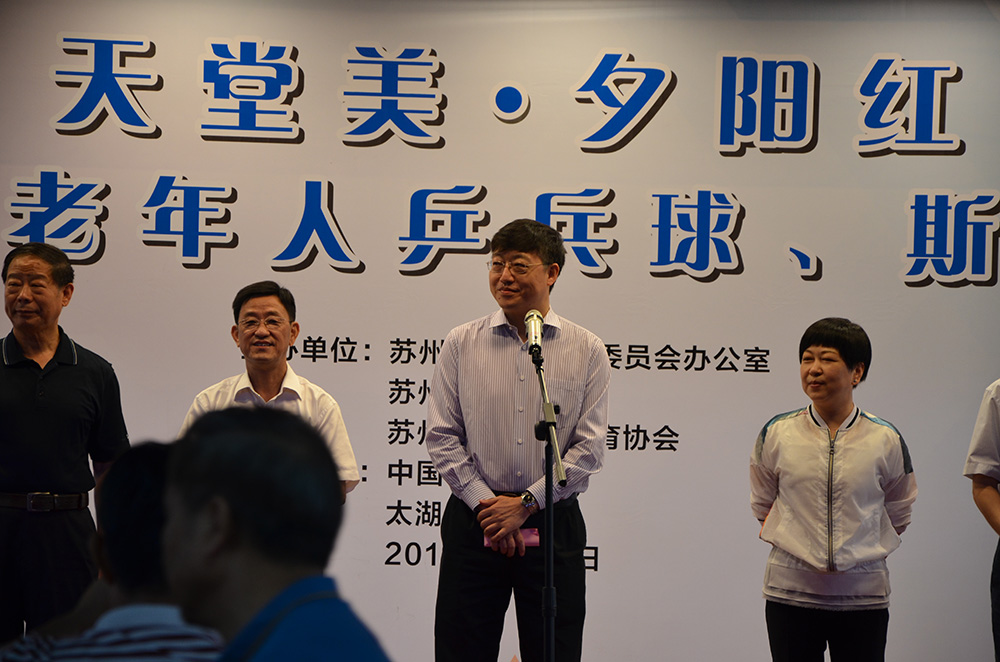 6月23日,由蘇州市老齡辦、蘇州市老齡協(xié)會、蘇州市老年人體育協(xié)會聯(lián)合主辦的“天堂美·夕陽紅”蘇州市老年人乒乓球、斯諾克賽于在市委老干部局的活動中心舉行?;顒娱_始前舉行了簡短的開幕式,市政府聶飆副市長,市人大常委會原副主任、市老齡協(xié)會周玉龍會長,市委老干部局、市民政局等領(lǐng)導(dǎo)出席開幕式。開幕式由市民政局副局長、市老齡協(xié)會鄭利江常務(wù)副會長主持,周玉龍會長致辭,聶飆副市長宣布比賽開始。出席開幕式的還有各市(區(qū))老齡辦、老齡協(xié)會、老年體協(xié)負(fù)責(zé)人及運(yùn)動員、裁判員共200多人。