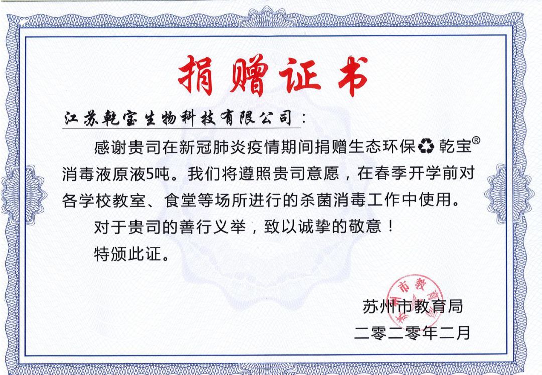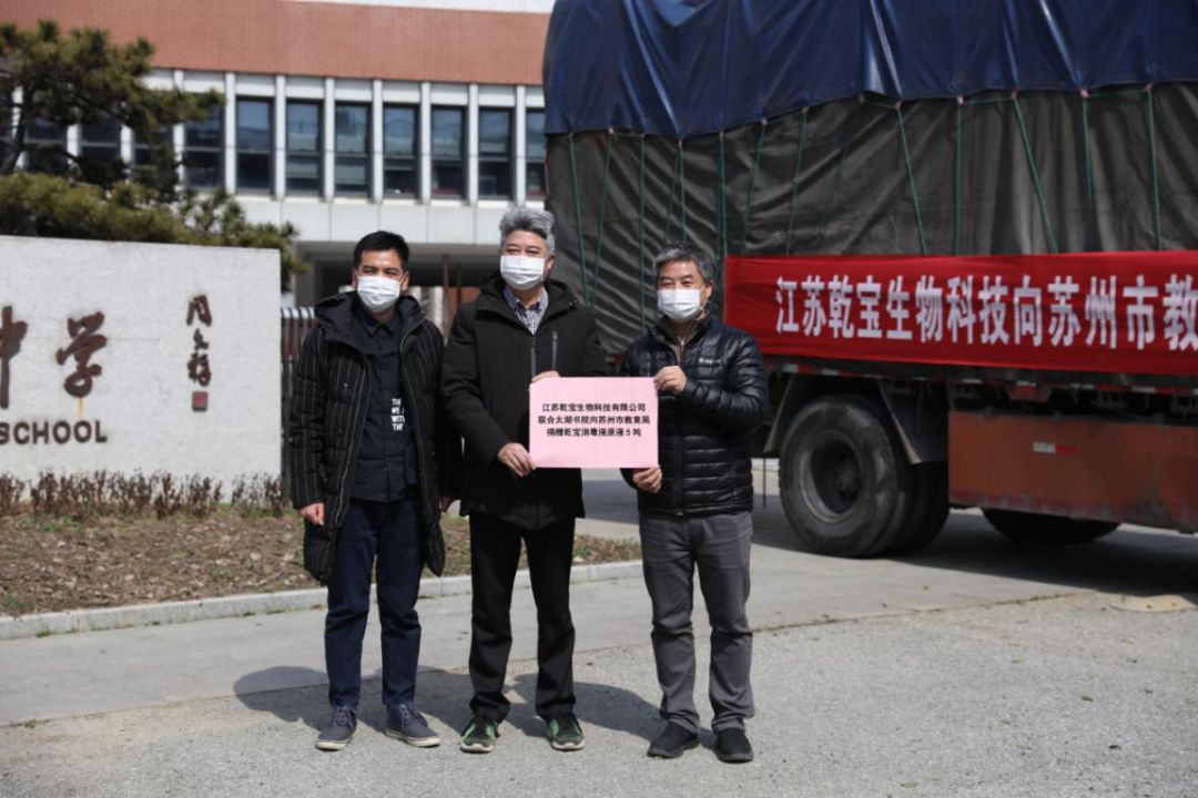 孩子是祖國的花朵,教育涉及千家萬戶。疫情期間,青少年的健康安全成為全社會的重要關(guān)注點。為阻斷疫情向校園蔓延,蘇州市教育局認真貫徹執(zhí)行教育部有關(guān)抗疫精神,全面推行各中小學校、幼兒園2020年春季學期延期開學,以及利用網(wǎng)絡平臺實行“停課不停學”舉措。為了幫助各中小學校、幼兒園提前做好復學前的校園環(huán)境及其設(shè)備的消殺工作,以及保障當下從事線上教學的教師健康安全,2020年2月27日,江蘇乾寶集團旗下企業(yè)江蘇乾寶生物科技有限公司聯(lián)合太湖書院向蘇州市教育系統(tǒng)捐贈消毒液原液5噸,以實際行動關(guān)愛支持蘇州市教育系統(tǒng)的防控疫情工作,援助學校在新形勢下切實加強“兩手抓”,阻擊疫情與做好開學準備兩不誤,助力“停課不停學”,守護師生的衛(wèi)生安全,積極為新學期的有序復學保駕護航。