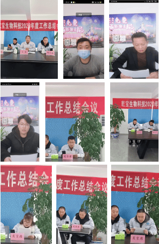 乾寶生物科技2020年度工作總結(jié)會(huì)由工廠辦公室主任陶文曦主持,總經(jīng)理丘東、生產(chǎn)副廠長謝海玉、技術(shù)設(shè)備部負(fù)責(zé)人周觀軍等人在主席臺(tái)就坐。會(huì)議共四項(xiàng)議程,首先由生產(chǎn)部、技術(shù)設(shè)備部、安全環(huán)保部、質(zhì)檢部、行政后勤部負(fù)責(zé)人對(duì)各自部門年度工作進(jìn)行回顧和總結(jié);其次,由市場(chǎng)營銷中心人員各自對(duì)年度工作進(jìn)行總結(jié),營銷總監(jiān)卞業(yè)春對(duì)公司全年?duì)I銷工作做詳細(xì)總結(jié);再次,生產(chǎn)基地每一位員工分別上臺(tái)匯報(bào)自己一年來的工作和下一年的計(jì)劃。各部門和各位員工總結(jié)一年來所取得的成績同時(shí),也找出了自身的不足之處,以及對(duì)2021年度工作提出了新的奮斗目標(biāo)。