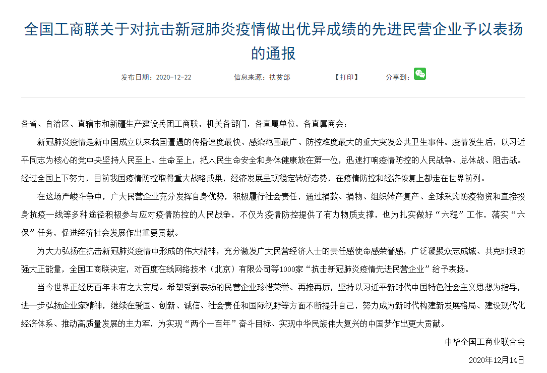 近期,中華全國(guó)工商業(yè)聯(lián)合會(huì)對(duì)抗擊新冠肺炎疫情做出優(yōu)異成績(jī)的先進(jìn)民營(yíng)企業(yè)予以表?yè)P(yáng),江蘇乾寶生物科技有限公司榮登榜單。