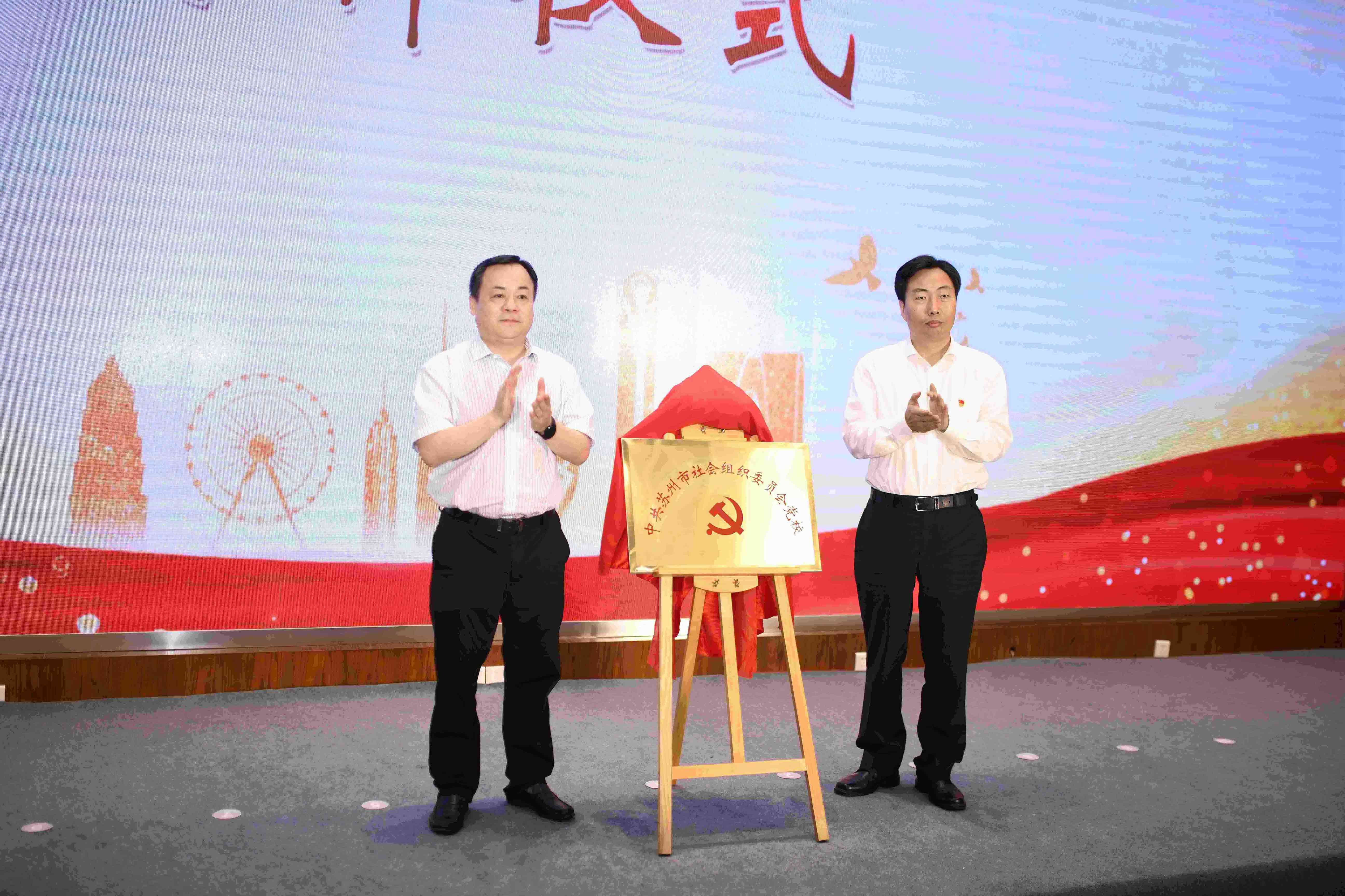 活動(dòng)現(xiàn)場(chǎng),蘇州市委組織部周春良副部長(zhǎng),市委市級(jí)機(jī)關(guān)工委吳菊錚書(shū)記,市委黨校常務(wù)副校長(zhǎng)、市行政學(xué)院楊軍院長(zhǎng),市民政局蔣亞亭局長(zhǎng)共同為中共蘇州市社會(huì)組織委員會(huì)黨校、中共蘇州市委黨校社會(huì)組織黨委分校揭牌。