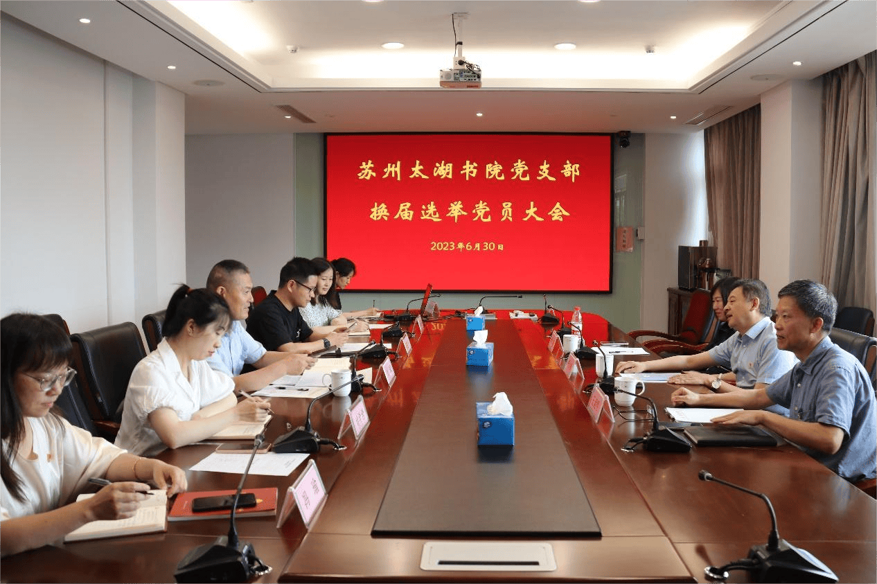 2023年6月30日下午,蘇州太湖書(shū)院黨支部在太湖書(shū)院三樓會(huì)議室舉行換屆選舉大會(huì)。出席本次大會(huì)的代表有黨支部書(shū)記劉斌、副書(shū)記陳建飛等全體黨員,蘇州市民政局社會(huì)組織黨委書(shū)記楊小勇、社會(huì)組織紀(jì)委委員徐嘉,太湖書(shū)院執(zhí)行院長(zhǎng)王建明以及入黨積極分子列席了本次會(huì)議,會(huì)議由陳建飛同志主持。